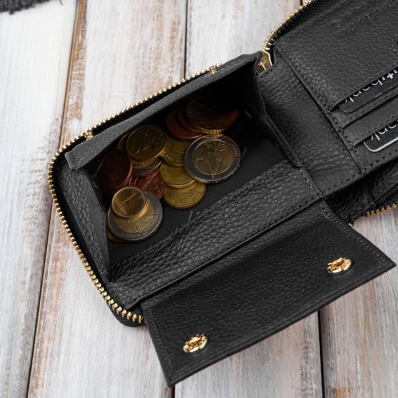 Całość zamykana jest bezpiecznym zamkiem błyskawicznym, który chroni zawartość przed wypadnięciem. Dodatkowo portfel wyposażono w ochronę RFID, chroniącą Twoje karty przed nieautoryzowanym odczytem.