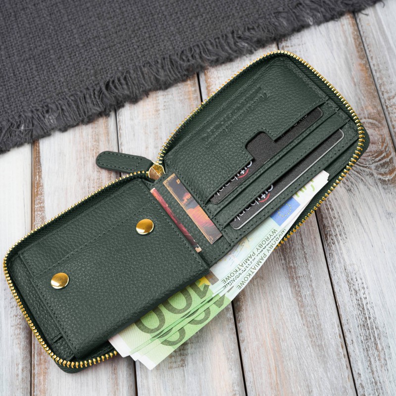 Całość zamykana jest bezpiecznym zamkiem błyskawicznym, który chroni zawartość przed wypadnięciem. Dodatkowo portfel wyposażono w ochronę RFID, chroniącą Twoje karty przed nieautoryzowanym odczytem.
