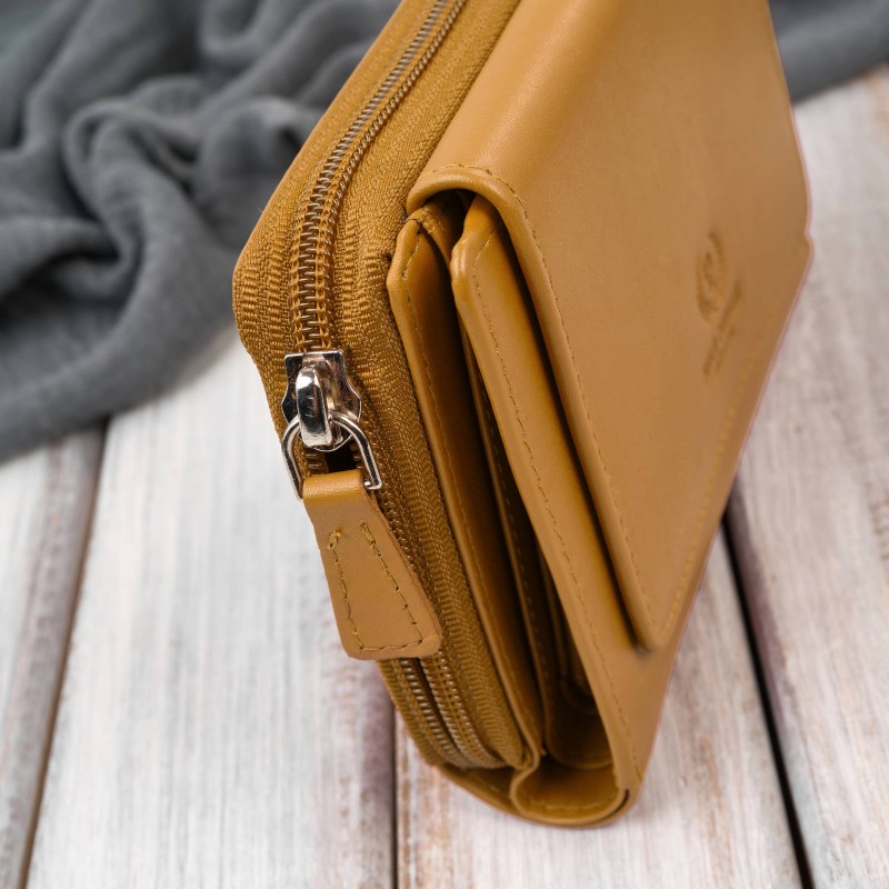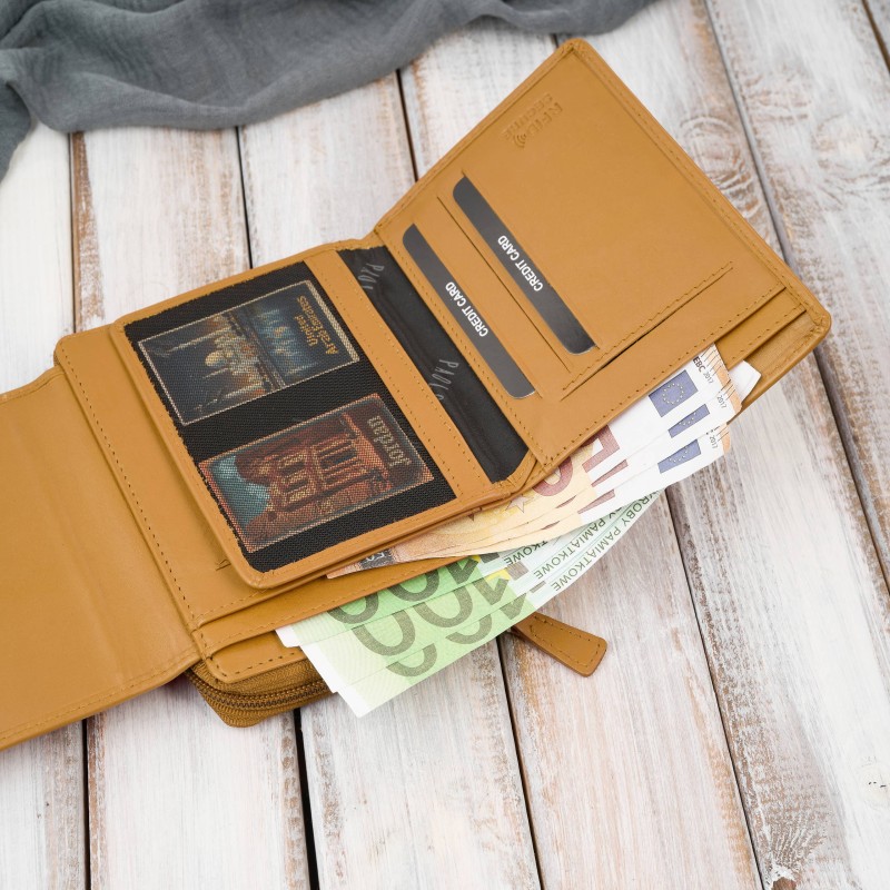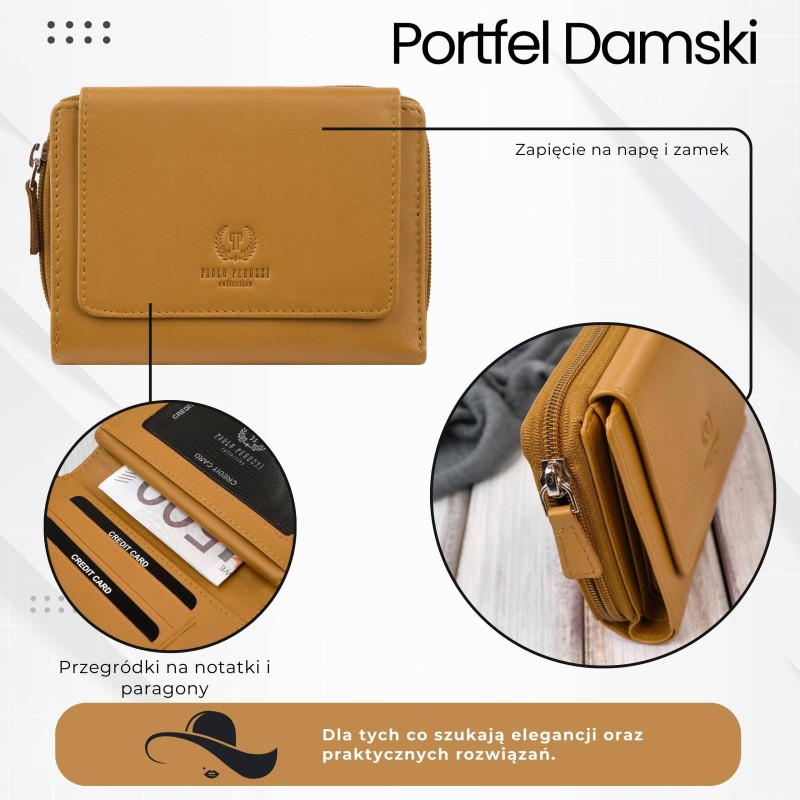 Portfel damski SL-07-MNG marki Paolo Peruzzi to propozycja dla kobiet, które szukają eleganckiego dodatku łączącego lekkość pastelowego koloru z doskonałą funkcjonalnością. Wykonany z miękkiej, naturalnej skóry, idealnie układa się w dłoni i jest przyjemny w dotyku. Skóra wyróżnia się trwałością i odpornością na codzienne zużycie, dzięki czemu portfel zachowuje świeży wygląd na lata.