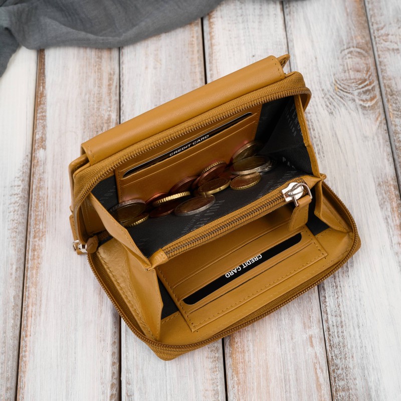 Mimo kompaktowych wymiarów (14 × 11 × 3 cm), model oferuje aż 16 przegród na karty, 4 schowki, bezpieczną kieszeń na bilon oraz pełnowymiarową przegrodę na banknoty. To idealny mały portfel damski dla kobiet, które oczekują połączenia organizacji, elegancji i subtelnego koloru.