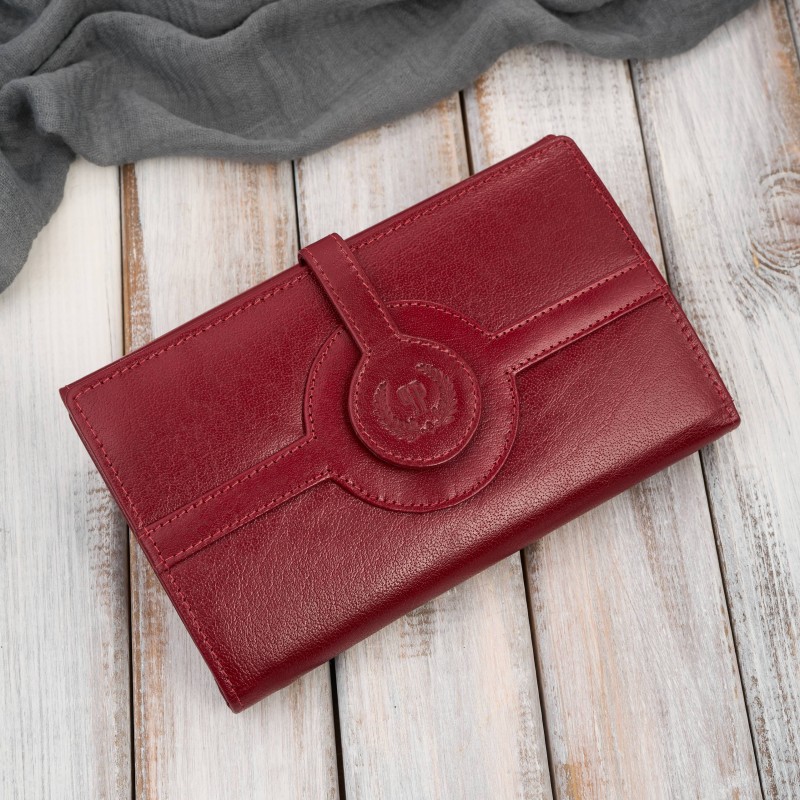 Przedstawiamy duży portfel damski skórzany w kolorze czerwonym T-134-RD, wykonany z wysokiej jakości skóry licowej, idealny dla kobiet, które cenią wyrazisty styl, elegancję i bezpieczeństwo w jednym funkcjonalnym dodatku.