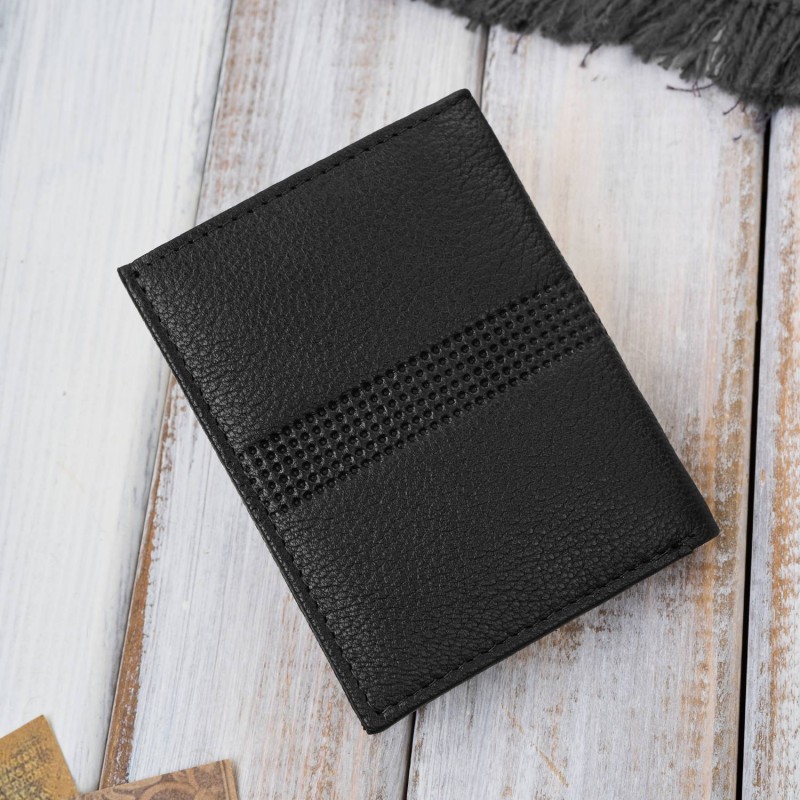 Centralne tłoczenie o chropowatej fakturze nie tylko dodaje całości unikalnego charakteru, ale także zapewnia pewniejszy chwyt podczas wyciągania portfela z kieszeni. To praktyczny detal, który wyróżnia model T-149-BL na tle klasycznych portfeli bądź etui na karty wśród skórzanej galanterii.