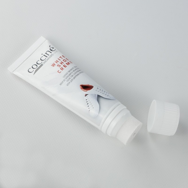 Sneakers Shoe Creme White to odżywczy, biały krem przeznaczony do codziennej pielęgnacji sneakersów wykonanych ze skóry gładkiej w jasnych kolorach. Krem skutecznie odświeża biel, zmiękcza skórę i przywraca jej elastyczność, a dodatkowo chroni przed wilgocią oraz blaknięciem spowodowanym promieniowaniem słonecznym.