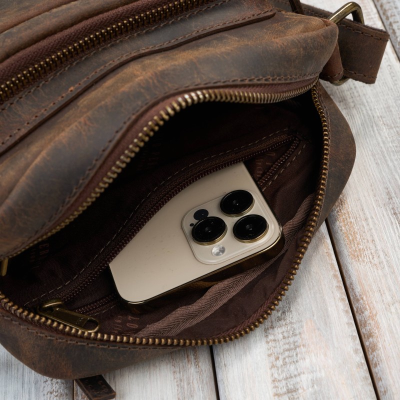 Această geantă poștalieră elegantă pentru bărbați din piele de vânător combină designul atemporal, durabilitatea și confortul. Modelul IM-01-HBR de la Paolo Peruzzi este alegerea ideală pentru bărbații care apreciază accesoriile practice cu un aer retro. Pielea Hunter conferă genții un aspect unic - suprafața ușor mată cu frecare naturală subliniază stilul vintage și caracterul masculin al produsului.