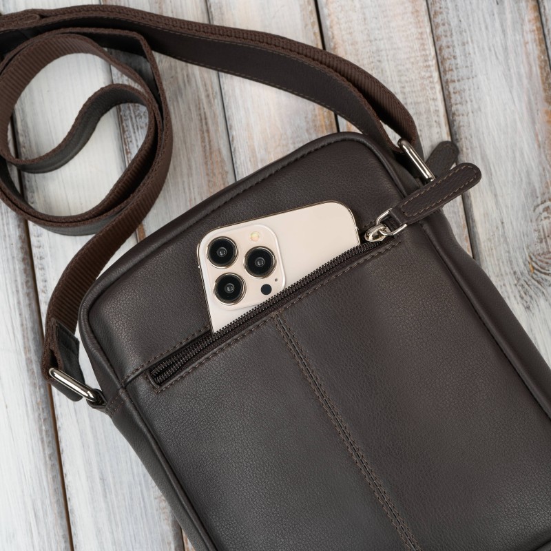 Saszetka męska skórzana na ramię brązowa z wcięciem Paolo Peruzzi AY-30-CGBR