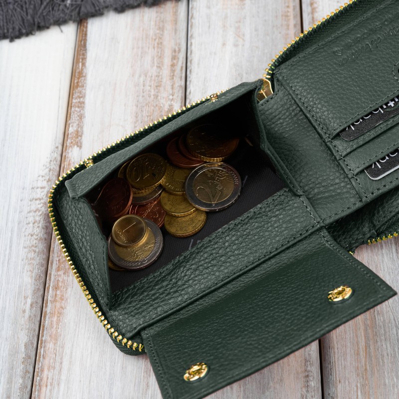 Întregul portofel este închis cu o închidere sigură cu fermoar, care protejează conținutul de căderea afară. În plus, portofelul este echipat cu protecție RFID, protejând cardurile de citirea neautorizată.