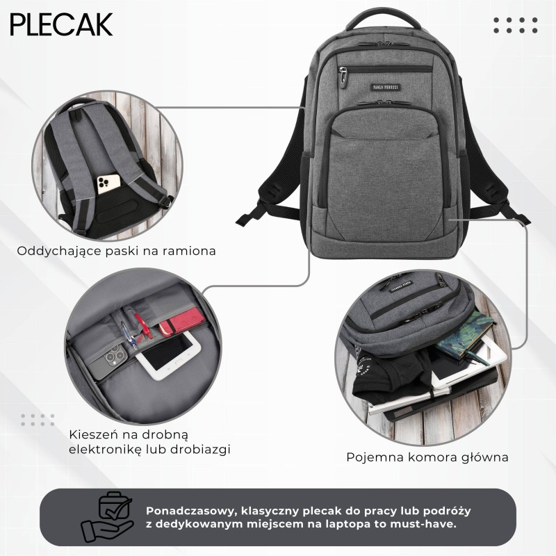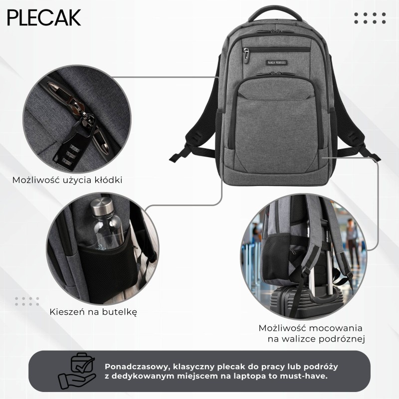 Plecak na laptopa podróżny do biura wielofunkcyjny szary Paolo Peruzzi AS-03-DGR