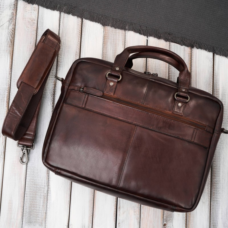 Skórzana torba na laptopa SL-08 marki Paolo Peruzzi to propozycja dla mężczyzn, którzy cenią klasyczny styl, solidne wykonanie oraz pełną funkcjonalność. Wykonana z wysokiej jakości skóry naturalnej, zachwyca elegancką, głębokim brązem, który podkreśla profesjonalny charakter torby. Srebrne, matowe okucia dodają jej subtelnego stylu vintage, tworząc ponadczasowy design dopasowany zarówno do stylu biznesowego, jak i codziennego.